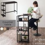 テーブル おしゃれ デスク 木製 スチール ハイテーブル 約 高さ100cm カウンターテーブル 収納 棚付き 3段…