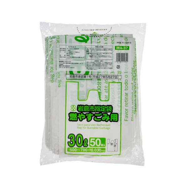 ジャパックス 岩倉市 指定ごみ袋 可燃 手付き 乳白色半透明 30L IWA−37 1パック(50枚)(お取寄せ品)