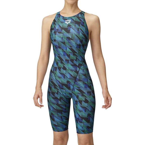 アリーナ arena FAR-2575W セイフリーバックスパッツ(着やストラップ) 水泳 ハーフスパッツ ブルー×ブラック