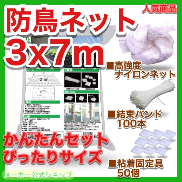 【ゆったりサイズで、固定具付き、だれでも簡単にベランダなどにスキマなく設置】plusgree鳥よけネットは、サイズ3m×7m、付属の結束バンド100本、固定具50個、図解説明書で簡単に設置できます。