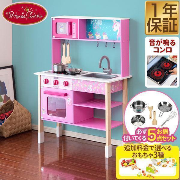 1年保証 ままごと キッチン 木製 Princess Coralie お鍋5点セット付き 選べる食材/おもちゃセットも 子供 子ども 3歳〜 ごっこ遊び 送料無料