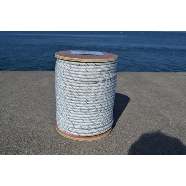 32打ち8mm100mNWブレイドエステルヨットロープ白青ボビン巻