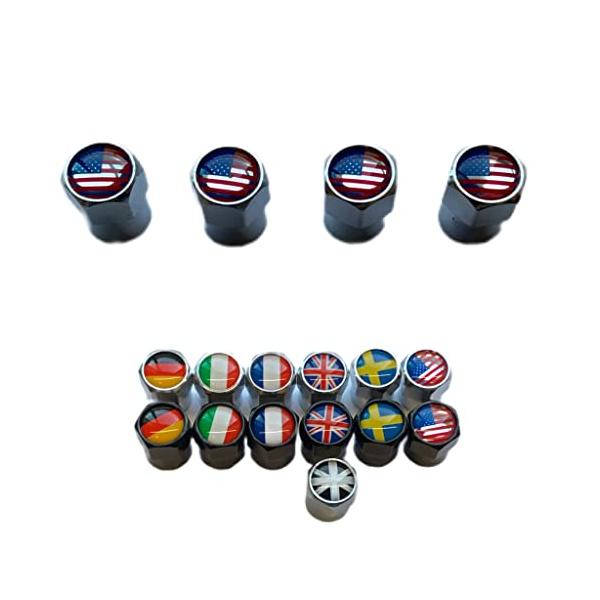 Roost アルミ製 タイヤバルブキャップ タイヤ ホイール リム エアバルブ キャップ フランス国旗 ドイツ国旗 イギリス国旗 アメリカ車 ア