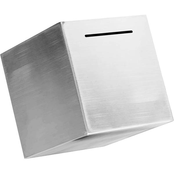 開かない貯金箱 おしゃれ 札 お札 ステンレス 大容量 正方形 (シルバー, ワンサイズ)