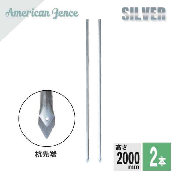 アメリカンフェンス用 杭 シルバー H2000mm 2本セット 防犯 インテリア 組立 メッキ フェンス DIY ガーデニング 送料無料