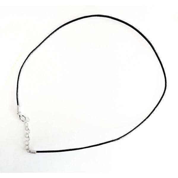 革ひも ネックレス 本牛革 真皮 円形 約2mm径 長さ約45cm 延長チェーン約5cmつき ブラック 革紐