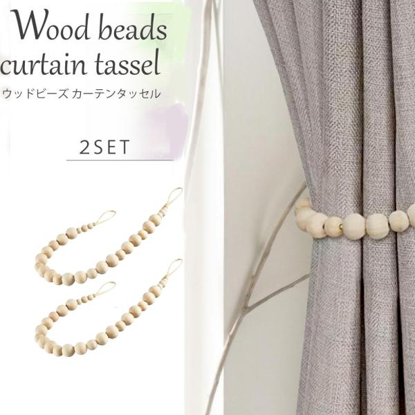 ウッドビーズ カーテンホルダー 木製 2個セット カーテンタッセル 合皮 北欧 おしゃれ カーテン留め アクセサリー インテリア ウッドボール