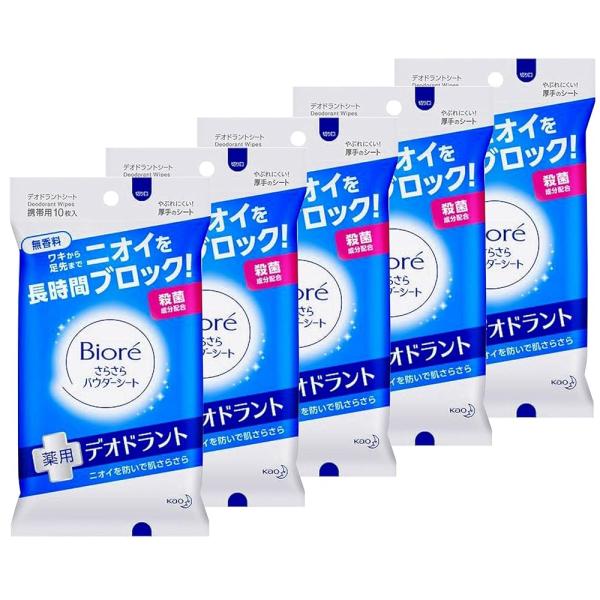 花王 ビオレ さらさらパウダーシート 薬用デオドラント 無香料 携帯 10枚 x 5個セット
