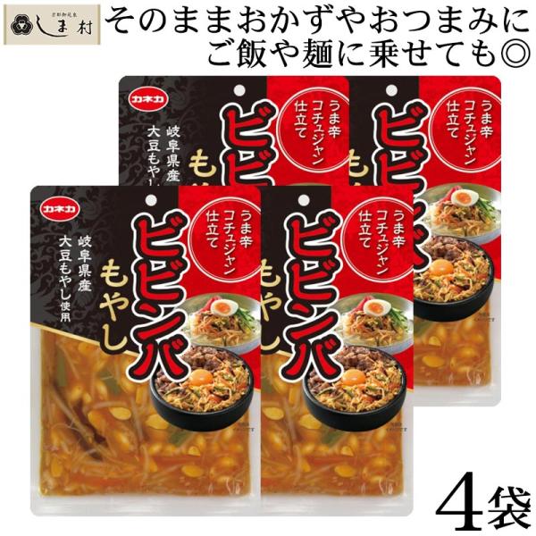 「カネカ ビビンバもやし うま辛コチュジャン仕立て 140g×4袋」 大豆もやし レトルト食品 常温保存 おつまみ ご飯のお供 送料無料