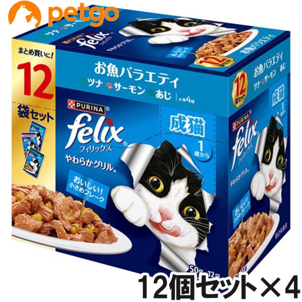 フィリックス やわらかグリル 成猫 お魚バラエティ 50g×12袋入り×4箱セット【まとめ買い】