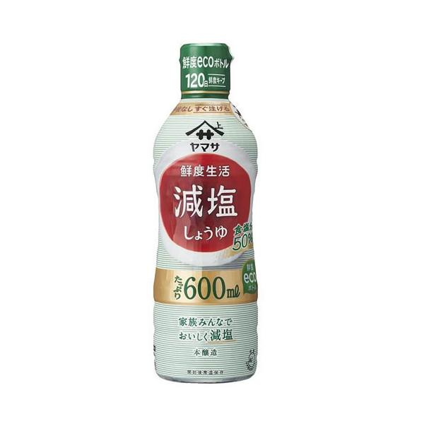 「本醸造ヤマサしょうゆ」の風味はそのままに、塩分を約半分に減らしました。鮮度ボトル大容量600ml。