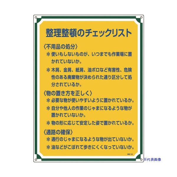 ■緑十字 安全・心得標識 整理整頓のチェックリスト 管理120 600×450mm エンビ 050120(8248068)