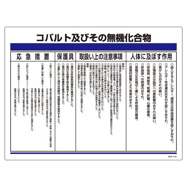 標識 特定化学物資関係標識 「コバルト及びその無機化合物」 特38-319 ( 安全標識 表示プレート 化学物質関係標識 化学物質 特定 表示 )