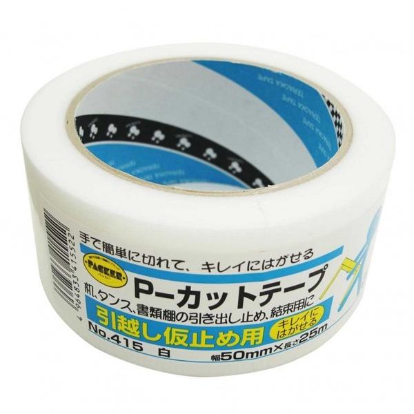 寺岡製作所 P-カットテープ 引越し仮止め用 No.415 白 幅50mmX長さ25m