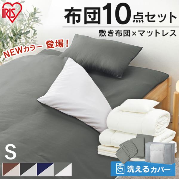 布団セット シングル マットレス付き 布団 10点 枕 おしゃれ 掛け布団 敷き布団 BOXシーツ 枕カバー マットレス 一人暮らし 安い KFS-M10S アイリスオーヤマ