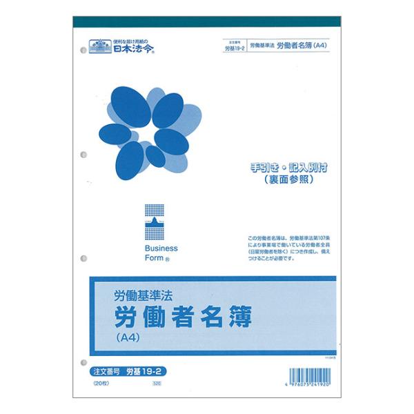 労基19-2 労働者名簿 A4サイズタテ・20枚入|日本法令 ネコポス便不可