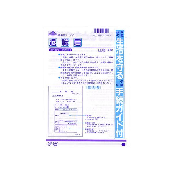 【お取り寄せ】日本法令 退職届 B5 3枚入 労務32-1
