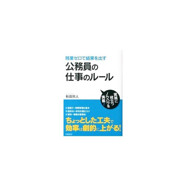 【説明】ちょっとした工夫で仕事の効率は劇的に上がる! 段取り・時間管理の基本から、指示の一歩先を読むコツ、資料・情報の整理法まで、公務員の仕事をラクにするノウハウを具体的なエピソードを元に紹介する。