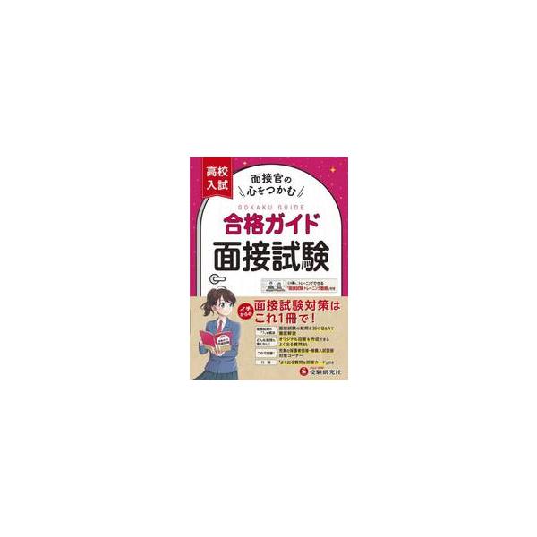 【説明】準備すべき事や心得,回答の仕方など,面接試験に万全の対策本。動画つき。〇面接試験のポイントと答え方がよくわかる<br>・第1章は面接で何を見られていて,何をどのように評価されているか,事前準備〜本番まで,面接で失敗しないためのポイントをQ&A方式でわかりやすくまとめてあります。<br>・第2章ではよく出る質問の対策として,自分の回答を整理し,推敲できるようにまとめました。<br>・第3章では,保護者面接での対策や推薦入試での面接についてまとめました。<br>〇模擬面接などの動画が無料でダウンロード<br> ・よく出る質問をひとりで何度でも練習することができる模擬面接動画。<br> ・本番直前の最終チェックに使える,面接チェックポイント動画。<br>