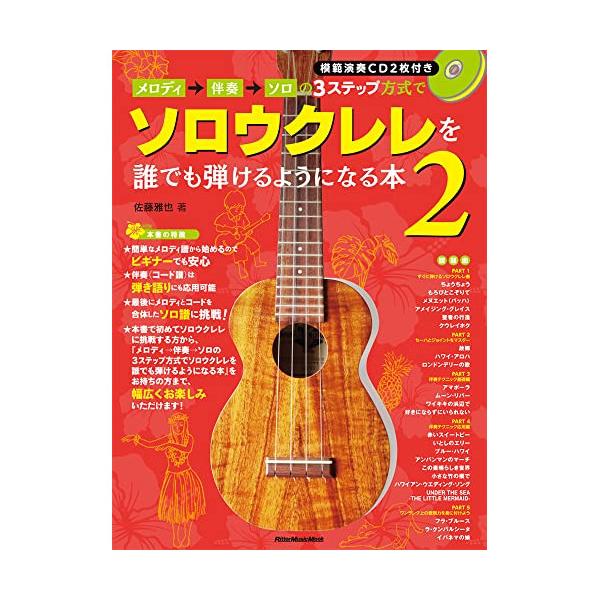 (楽譜・書籍) メロディ→伴奏→ソロの3ステップ方式でソロウクレレを誰でも弾けるようになる本 2(模範演奏CD2枚付き)【アウトレット】
