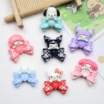 リボンの上に乗ったかわいい動物たち 7種類★うさぎ ねこ いぬ☆貼り付けデコパーツ ウサギ 兎 ネコ 猫 犬 …